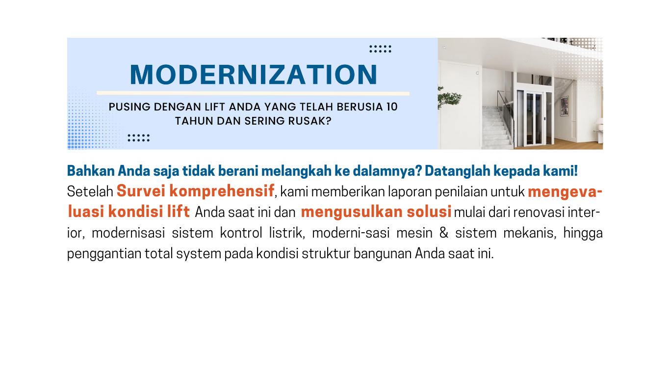 Dipimpin oleh Direktur Manager Ibu Natalia Sutanto, kesuksesan perusahaan yang konsisten berasal dari tim yang dinamis dengan pengalaman puluhan tahun di industri alat transportasi vertikal di Indonesia, pengetahuan profesional dalam desain produk dan sistem, metodologi manajemen proyek yang matang dan efisien, serta sebagai layanan purna jual yang perhatian dan cepat tanggap.